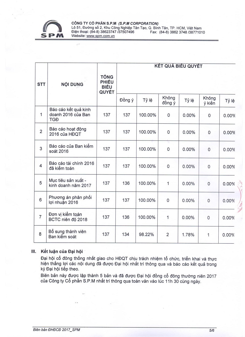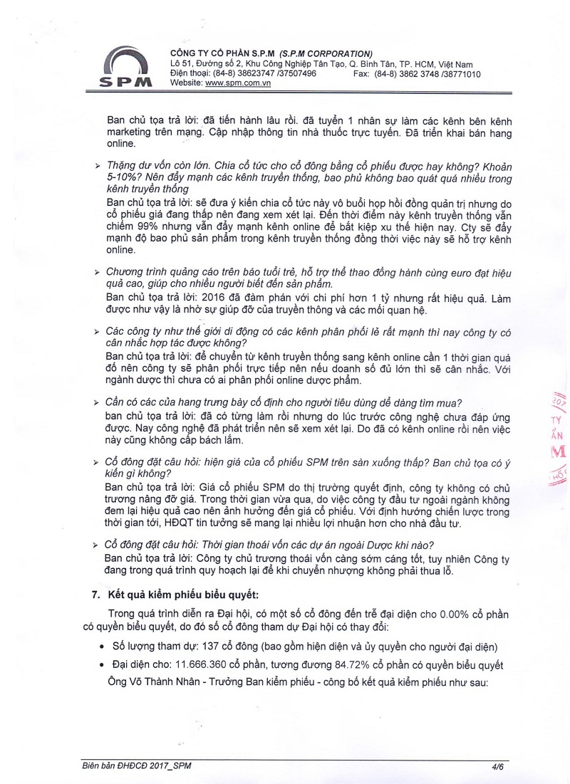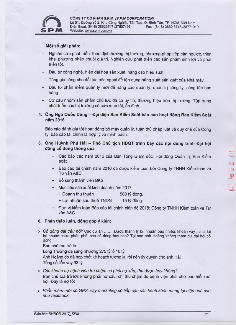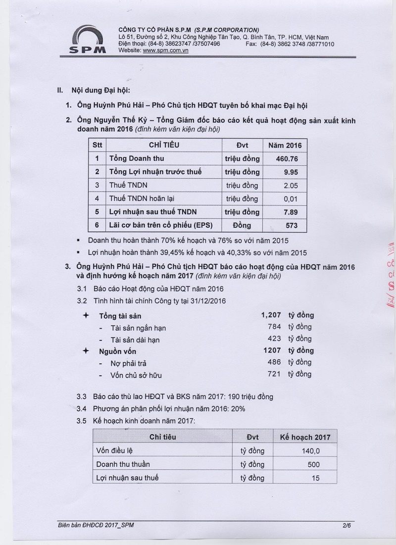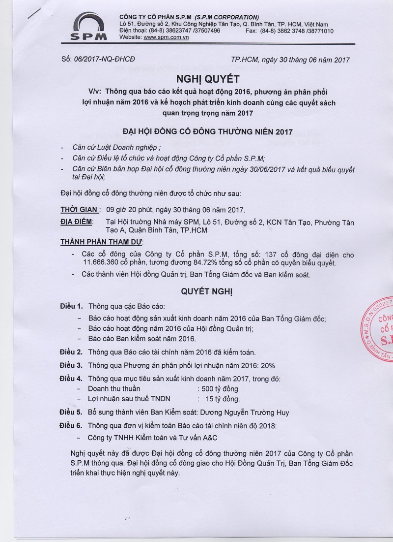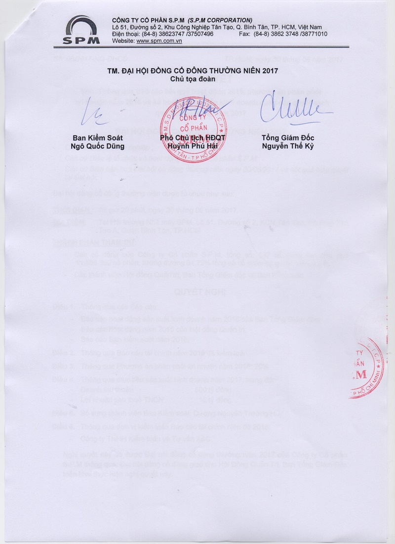 ĐẠI HỘI CỔ ĐÔNG THƯỜNG NIÊN NĂM 2017 CỦA CÔNG TY CỔ PHẦN SPM