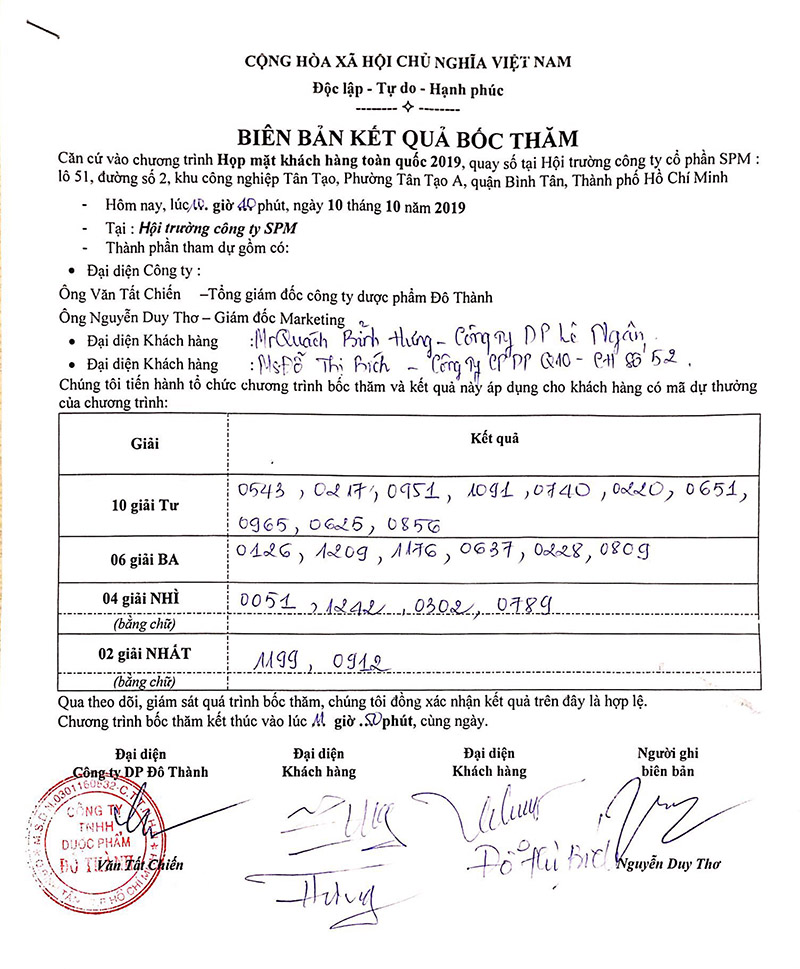 Ngày 10/10/2019, Công ty cổ phần SPM đã tiến hành chương trình quay số trực tiếp để tìm ra những khách hàng may mắn trúng giải.