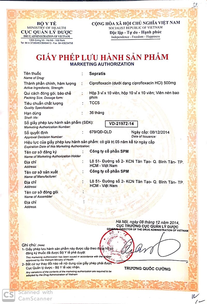Nên xem xét cẩn thận các chỉ dẫn chính thức đã có về sử dụng thích hợp các kháng sinh..Sản phẩm được Cơ quan quản lý nhà nước cấp giấy xác nhận công bố lưu hành trên toàn quốc, Số: VD-21972-14