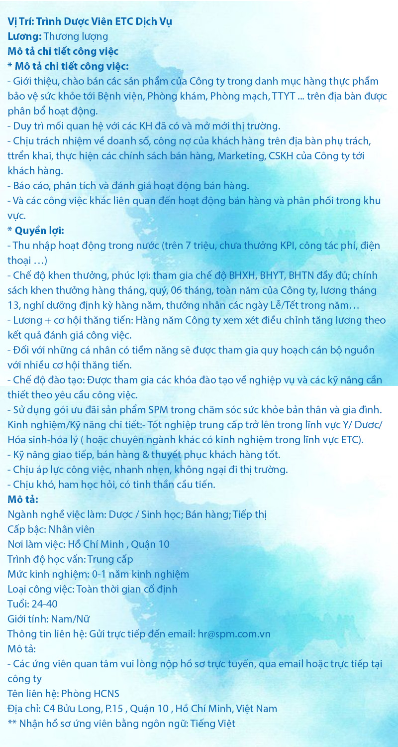 Vị Trí: Trình Dược Viên ETC Dịch Vụ