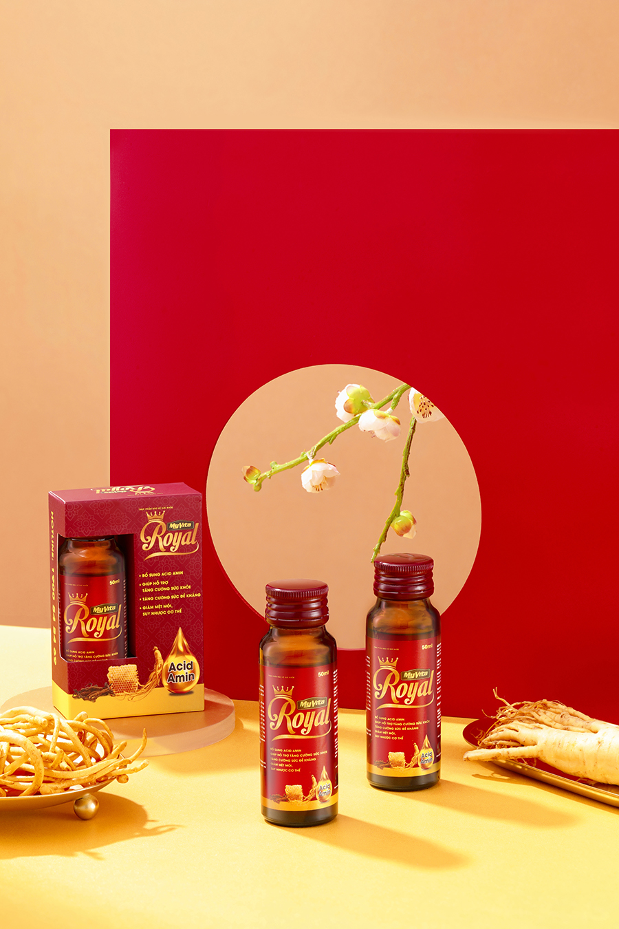 MyVita Royal cung cấp 8 acid amin thiết yếu và dưỡng chất từ các dược liệu quý như: Đông Trùng hạ thảo, Cao Nhân sâm, Cao Sâm cau và Sữa ong chúa, giúp hỗ trợ dinh dưỡng cho người mới ốm dậy, người cao tuổi, người cần tăng cường sức khỏe, sức đề kháng kém, mệt mỏi.